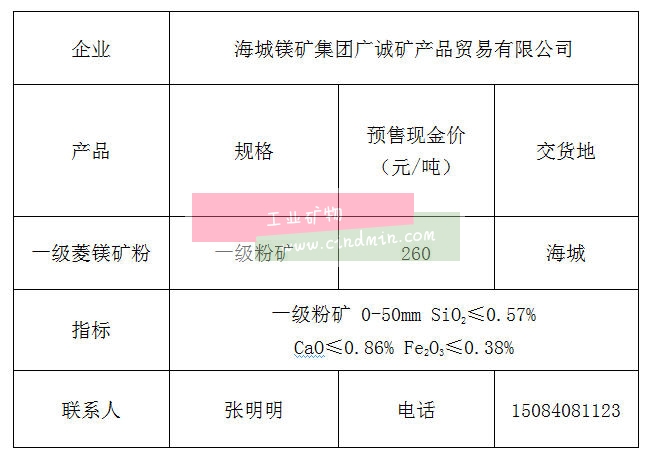 10月27日海城镁矿集团广诚矿产品贸易有限...
