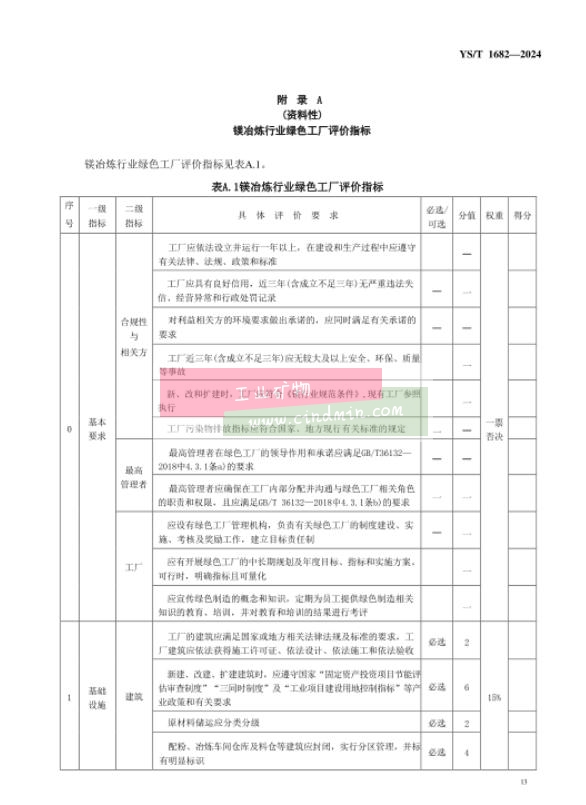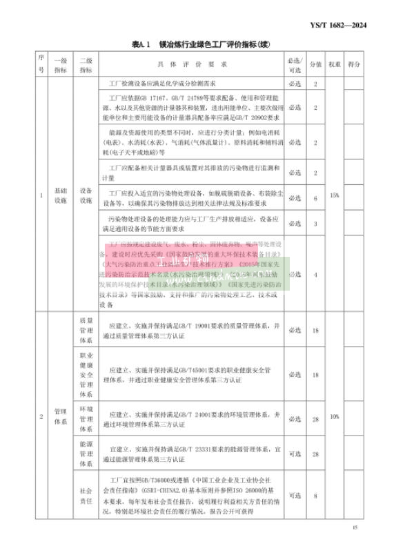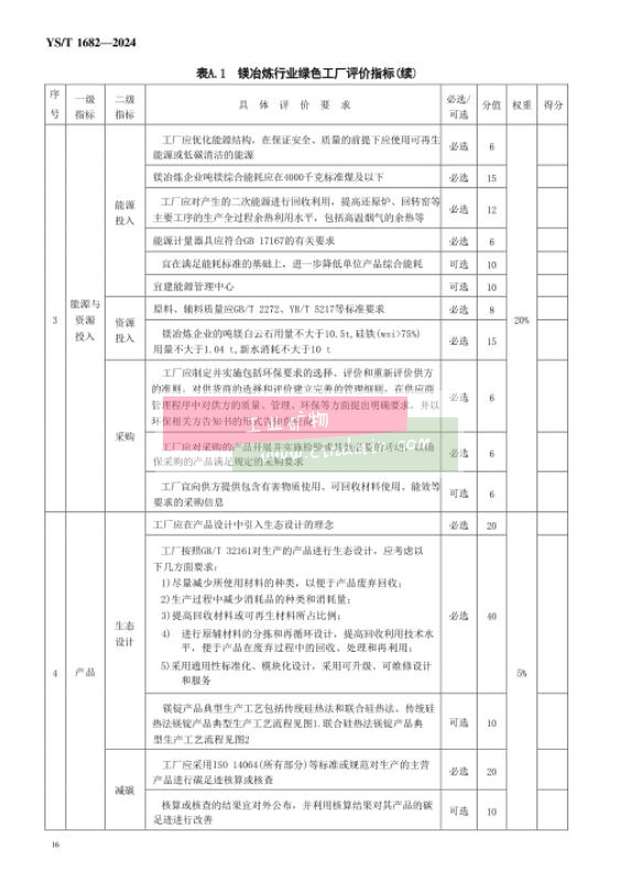 镁冶炼行业绿色工厂评价要求 YS/T 1682-2024(二)