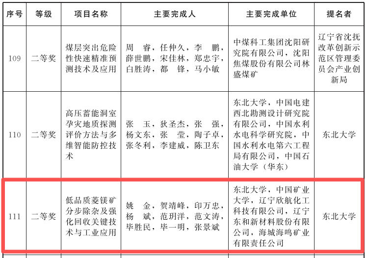 全面贯彻落实党的二十大和二十届历次全会精神,统筹教育强省、科技强省、人才强省建设,省政府决定,对为我省科学技术进步和经济社会发展作出突出贡献的科学技术人员和组织给予奖励,2025年12月24日,辽宁省人民政府公布关于2024年度辽宁省科学技术奖励的决定,其中“低品质菱镁矿分步除杂及强化回收关键技术与工业应用”获技术发明奖二等奖,“耐火材料用新型绿色环保树脂的研发与应用”获技术发明奖三等奖。
