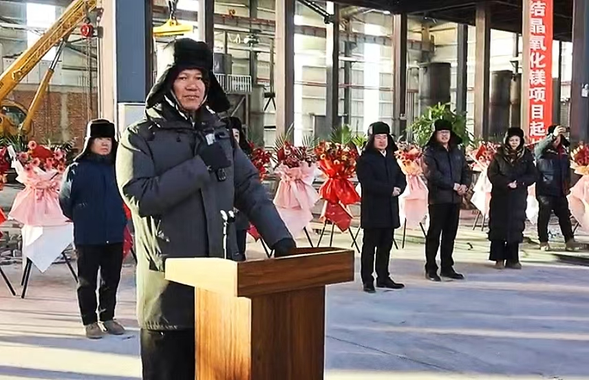 联合荣大集团董事长章荣会博士在致辞中指出:恒锐(通辽)5万吨大结晶氧化镁项目,是联合荣大有史以来最大的一个项目。其从2025年9月18日正式动工到2026年元月18日,短短4个月就建成。联合荣大的员工和项目建设方、机械设备供应方,肩并肩战风沙、斗严寒,终于取得阶段性成果,迎来了今天的起炉仪式。但往后,我们依然面临很多困难,百尺竿头,需继续努力!本人是中国耐火材料协会副会长、辽宁非金属协会的高级专家,深知氧化镁砂对整个基础工业从冶金到航天到核电到电力、电工,都是重要的基础原材料。中国是全世界氧化镁最主要的供应商,其生产能力的建立和生产效率的提升,意味着国家竞争力的提升。所以,本人对这个项目也非常重视,看到今天有这样的结果,非常高兴。实际上,各位到场和没到场的嘉宾都会对这个项目抱有殷切的期盼!希望我们的供应商、合作商、还是联合荣大集团的全体员工都能够拿出精神,拿出力量,有条件上,没条件创造条件也要上,一定要让这个项目圆满成功!