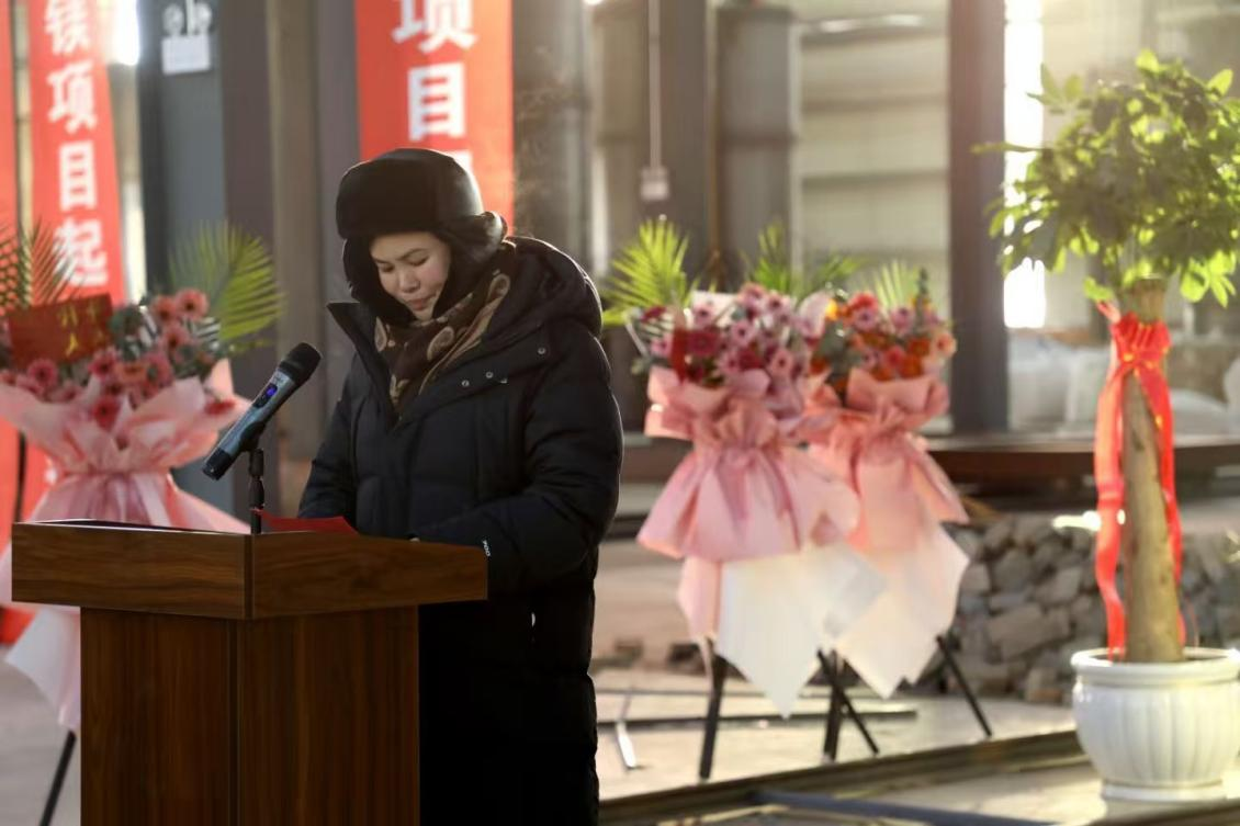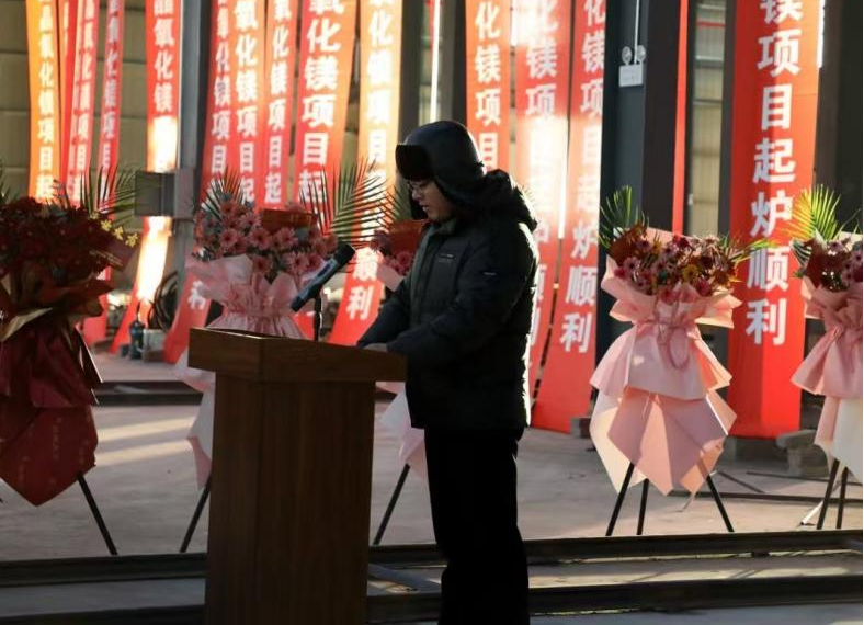 今天我们齐聚一堂,共同见证一项行业突破性纪录的诞生——恒锐(通辽)大结晶氧化镁项目正式起炉。该项目从设计、土建到设备安装调试并投产,仅用时四个月,创造了令人惊叹的“通辽速度”。在此,我谨代表联合荣大企业集团董事长章荣会博士及全体员工,对各位嘉宾的到来表示最热烈的欢迎和最衷心的感谢!