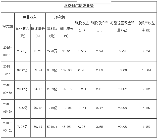 4月23日,北京利尔(002392)今日发布2019年第一季度报告,公告显示,报告期内实现营收7.91亿元,同比增长8.78%;归属于上市公司股东的净利润7978.44万元,同比增长35.01%。