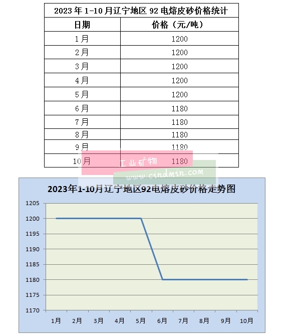 2023年1-10月辽宁地区92电熔皮砂价格统计