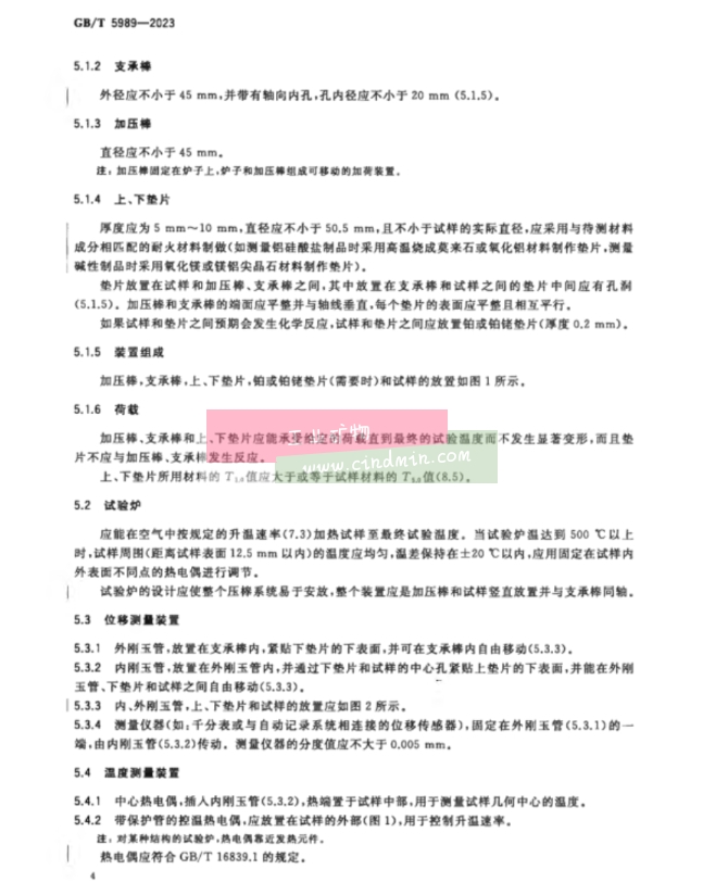 耐火材料 荷重软化温度试验方法(示差升温法) GB/T 5989-2023