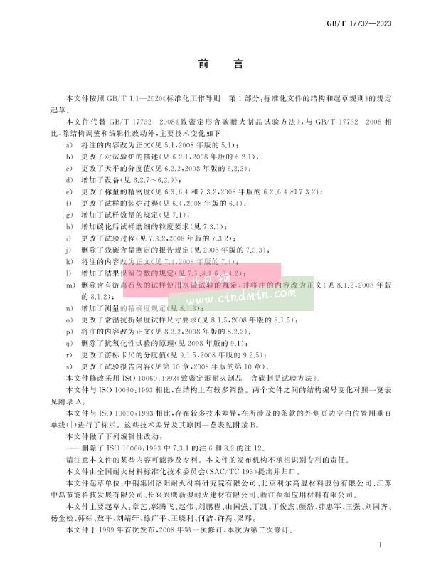 致密定形含碳耐火制品试验方法 GB/T 17732-2023