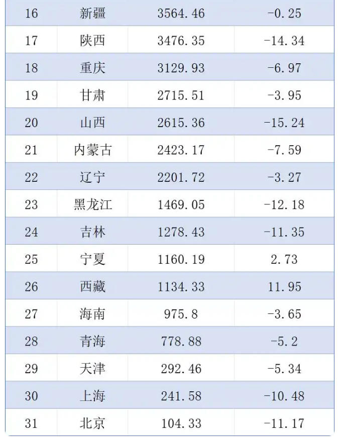 同比方面,仅河北、宁夏、西藏上升,其余省份下降,其中山西降幅最大为 15.24%,西藏增幅最大达 11.94%,整体水泥市场产量呈下行态势。