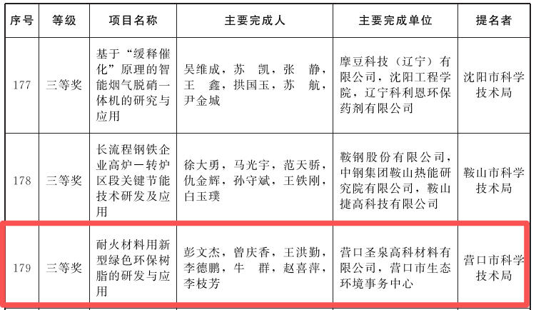 全面贯彻落实党的二十大和二十届历次全会精神,统筹教育强省、科技强省、人才强省建设,省政府决定,对为我省科学技术进步和经济社会发展作出突出贡献的科学技术人员和组织给予奖励,2025年12月24日,辽宁省人民政府公布关于2024年度辽宁省科学技术奖励的决定,其中“低品质菱镁矿分步除杂及强化回收关键技术与工业应用”获技术发明奖二等奖,“耐火材料用新型绿色环保树脂的研发与应用”获技术发明奖三等奖。