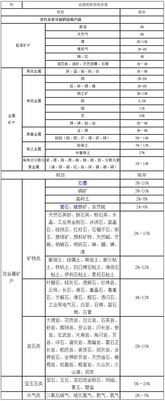 以下附《中华人民共和国资源税法(征求意见稿)》 资源税税目税率表