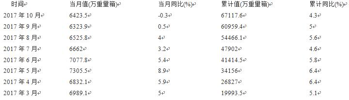 从供给端来看,前瞻数据库显示, 2017年1-10月中国平板玻璃产量为67117.6万重量箱,同比增长4.3%;产量增速逐渐放缓,其中10月产量6423.5万重量箱,同比下降0.3%。2016年中国平板玻璃产量为77402.77万重量箱,同比增长5.8%。